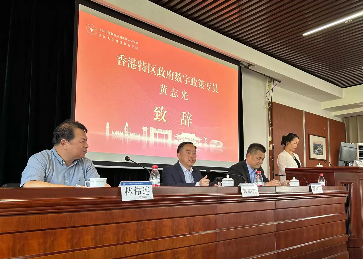 During the first stop in Hangzhou, Mr Wong visited Zhejiang University on August 24 and 25 to attend the 2025 Hong Kong Information Technology and Cybersecurity Special Training Course. Addressing the opening ceremony, Mr Wong said, "The Hong Kong Special Administrative Region (HKSAR) Government is fully committed to aligning with the nation's technological innovation and development strategy, and safeguarding cybersecurity is of paramount importance in the pursuit of promoting high-quality development in innovation and technology (I&T) for the nation and Hong Kong." He encouraged participants to actively engage in discussions, fostering knowledge sharing and mutual learning to strengthen Hong Kong's cybersecurity and digital ecosystem, thereby contributing to the high-quality development of the nation's digital economy.