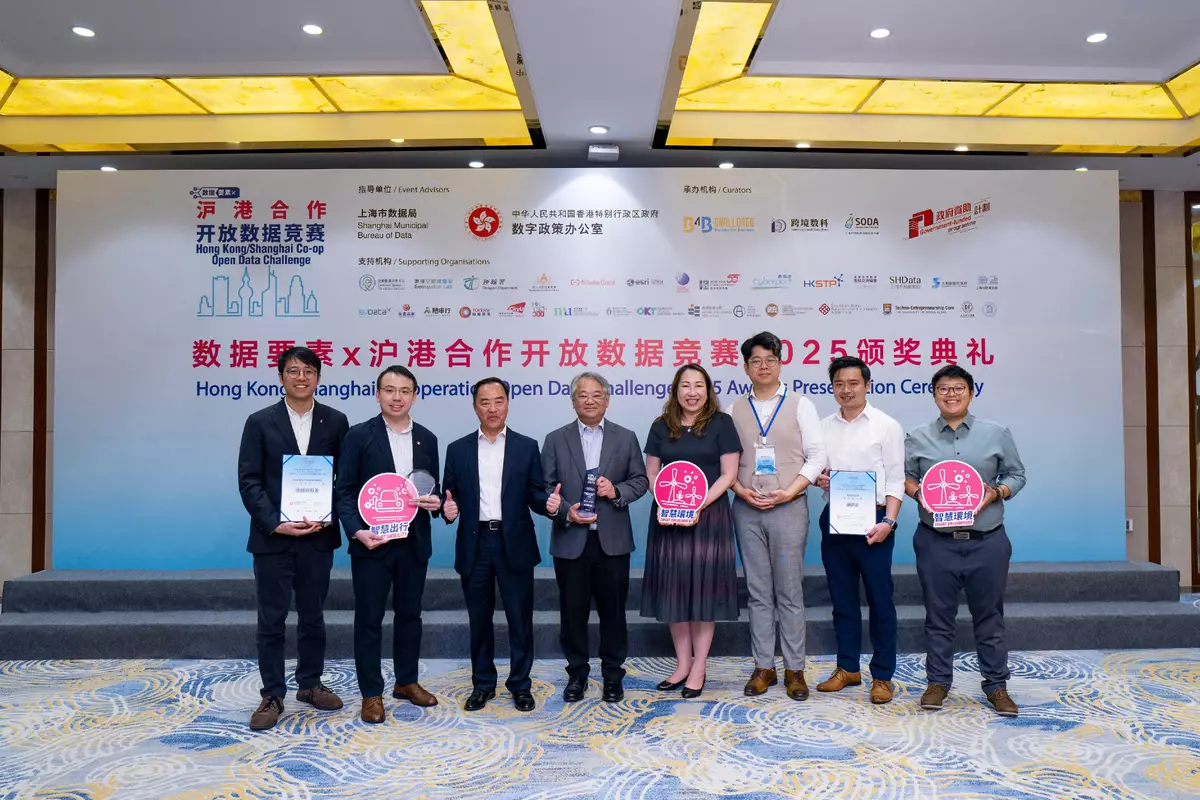 The Final Judging and the Awards Presentation Ceremony were held in Shanghai yesterday (August 26) and today (August 27) respectively. The Hong Kong delegation, comprising 13 teams from various enterprises and institutions, performed outstandingly in the competition, with Territory North Group winning the Grand Award and Best SmartEnvironment Award with their solution "Hong Kong Environmental Database", while Metro Maestro claimed the Best SmartMobility Award with their solution "Passenger Route Choice Simulation". Some of the contesting entries will be nominated to compete for the national 2025 "Data Element x" competition jointly organised by the National Data Administration and relevant departments, further showcasing Hong Kong's I&T strengths.