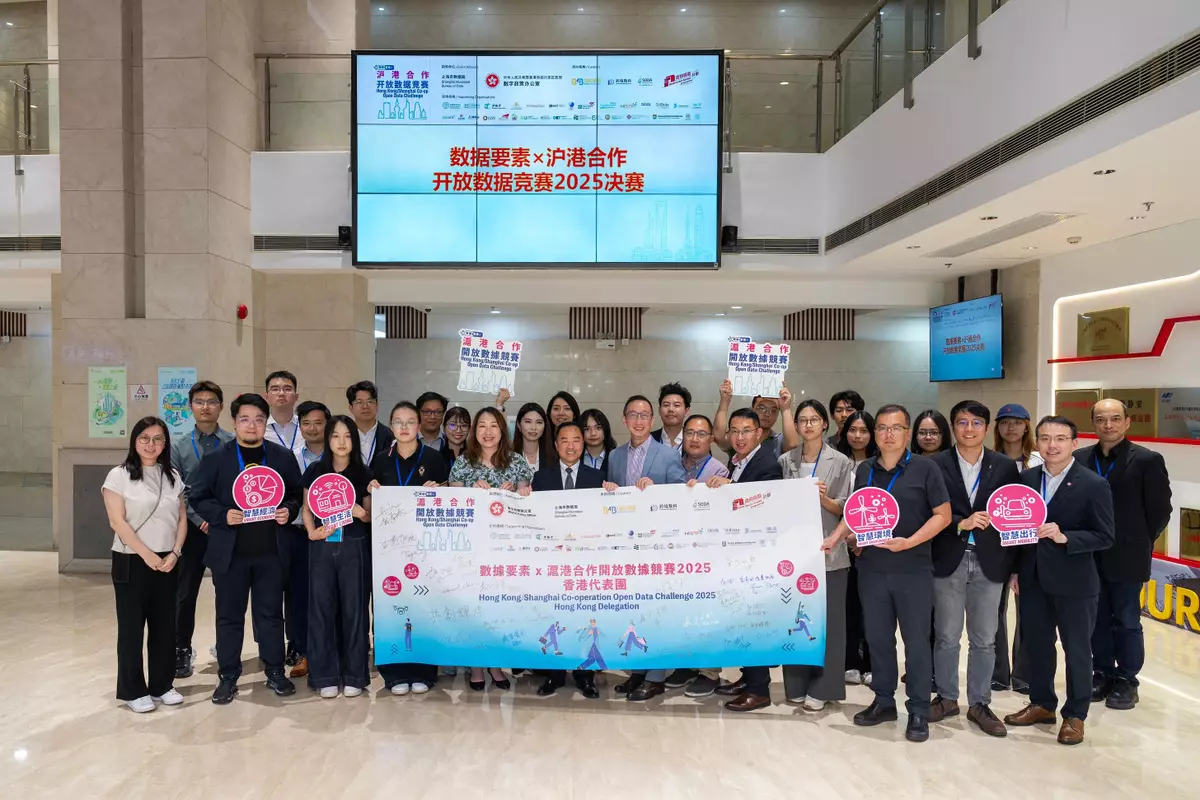 Mr Wong then proceeded to visit Shanghai to show his support for the Hong Kong teams competing in the HSODC 2025 and serve as one of the judges for the Grand Award. Jointly steered by the Digital Policy Office (DPO) of the HKSAR Government and the Shanghai Municipal Bureau of Data, the HSODC 2025 marks the third consecutive year of collaboration between the two cities. With the theme "Co-creating a Data Industry Platform for the Two Cities", the HSODC 2025 encourages contestants to harness the extensive open data resources available in the two cities to create innovative projects and develop frontier applications that emphasise four key areas, namely smart mobility, smart living, smart environment, and smart economy, thereby jointly driving deeper integration and fostering synergy in the digital economies of the two cities.
