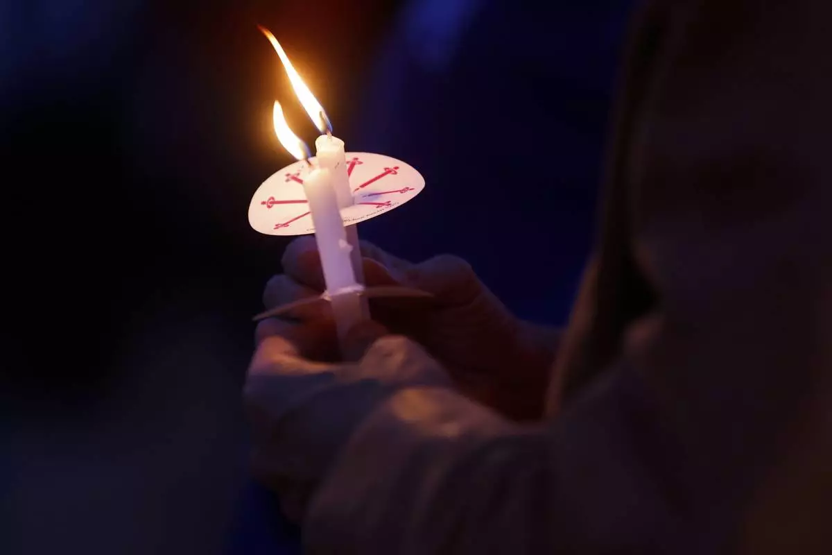 People gather at a vigil at Lynnhurst Park after a shooting at the Annunciation Catholic School Wednesday, Aug. 27, 2025, in Minneapolis. (AP Photo/Bruce Kluckhohn)
