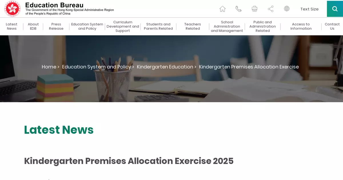 The Education Bureau (EDB) announced today (August 28) that six new estate kindergarten premises are open for applications by eligible applicant bodies under the Kindergarten Premises Allocation Exercise 2025. Details of the six kindergarten premises are set out in the Annex.