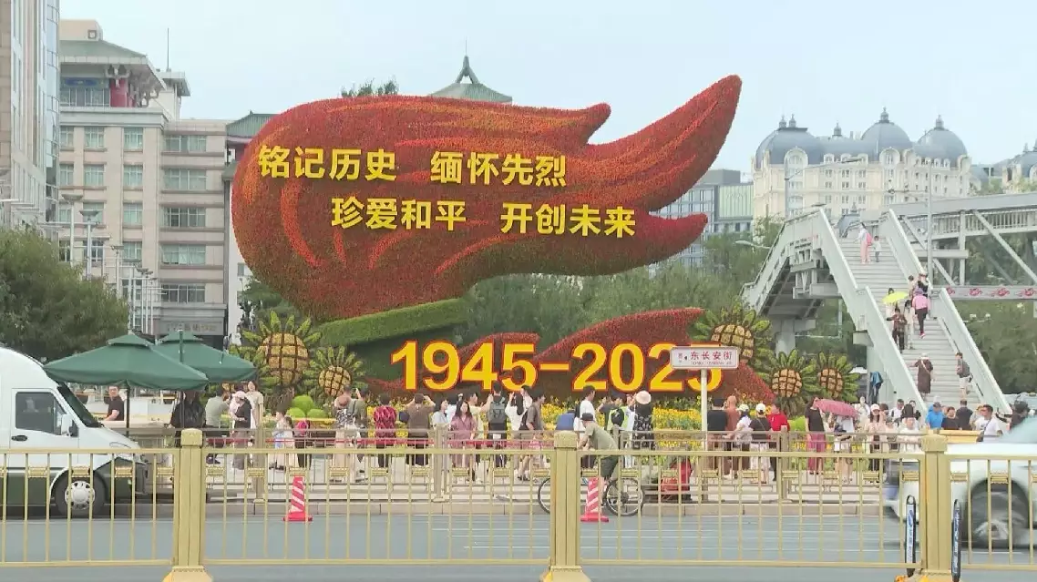 Ten themed flower beds were unveiled along Beijing's Chang'an Avenue to commemorate the 80th anniversary of the victory in the Chinese People's War of Resistance Against Japanese Aggression and the World Anti-Fascist War, blending solemn historical remembrance with a vision of national rejuvenation.