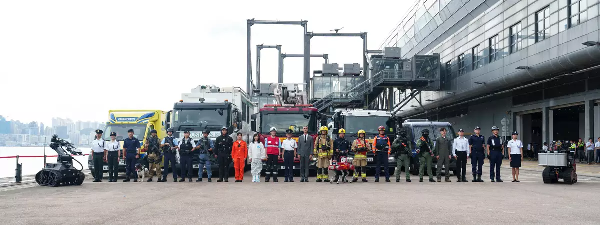 About 500 personnel participated in the exercise. In addition to the Security Bureau and the six ICTU member departments, namely the Hong Kong Police Force, the Immigration Department, the Customs and Excise Department, the Correctional Services Department, the Fire Services Department and the Government Flying Service, staff from the Marine Department, the Government Laboratory, the Hospital Authority and the Kai Tak Cruise Terminal also actively participated and assisted in co-ordinating the exercise.