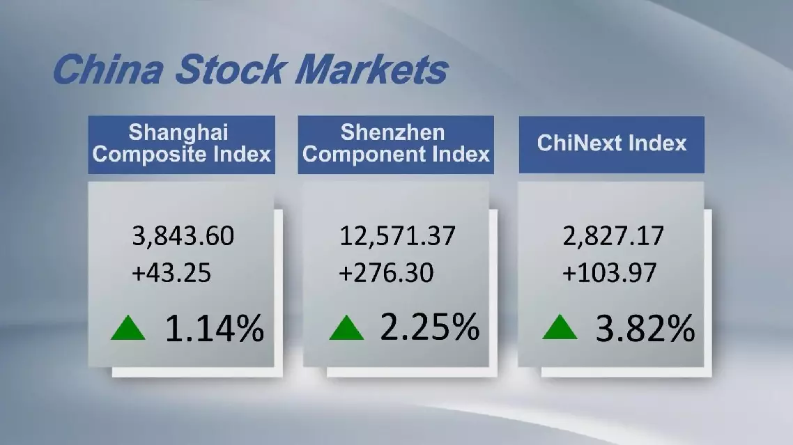 Chinese stocks closed higher on Thursday, with the benchmark Shanghai Composite Index up 1.14 percent to 3,843.60 points.