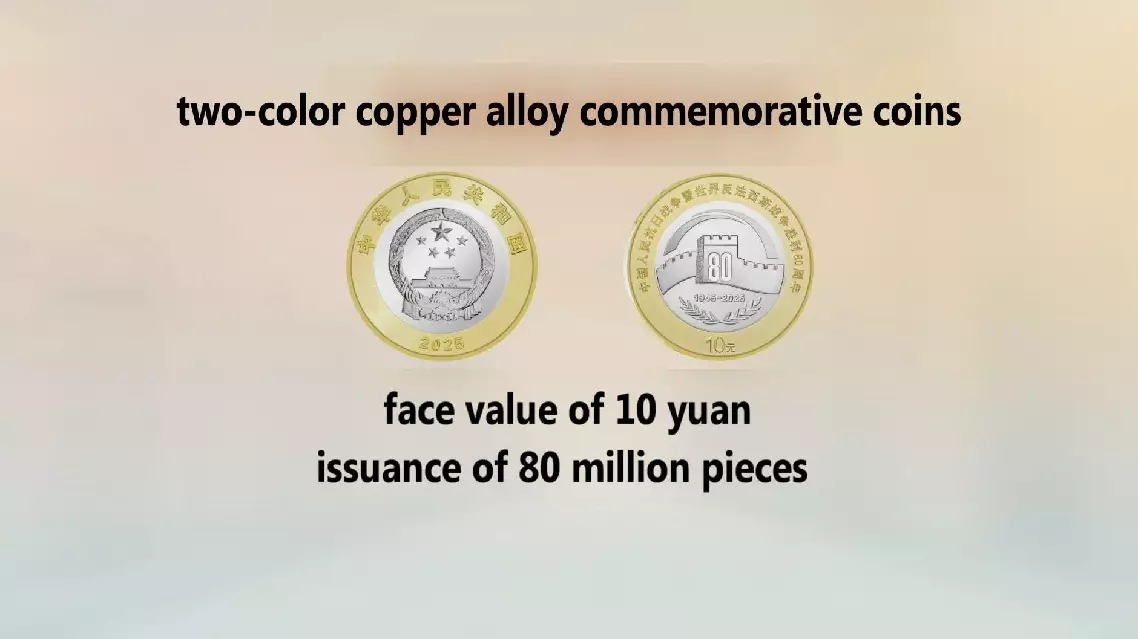 China's central bank announced on Thursday that it will issue a set of commemorative coins starting from Sept 3 to commemorate the 80th anniversary of the victory in the Chinese People's War of Resistance Against Japanese Aggression and the World Anti-Fascist War.