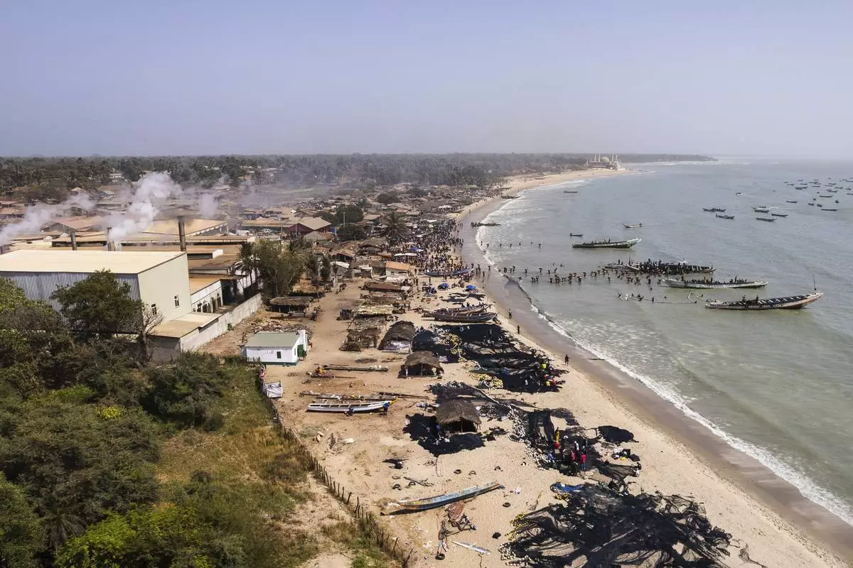 Artisanal fishermen on the shore of Gunjur, Gambia, on March 23, 2025. (AP Photo/Grace Ekpu)
