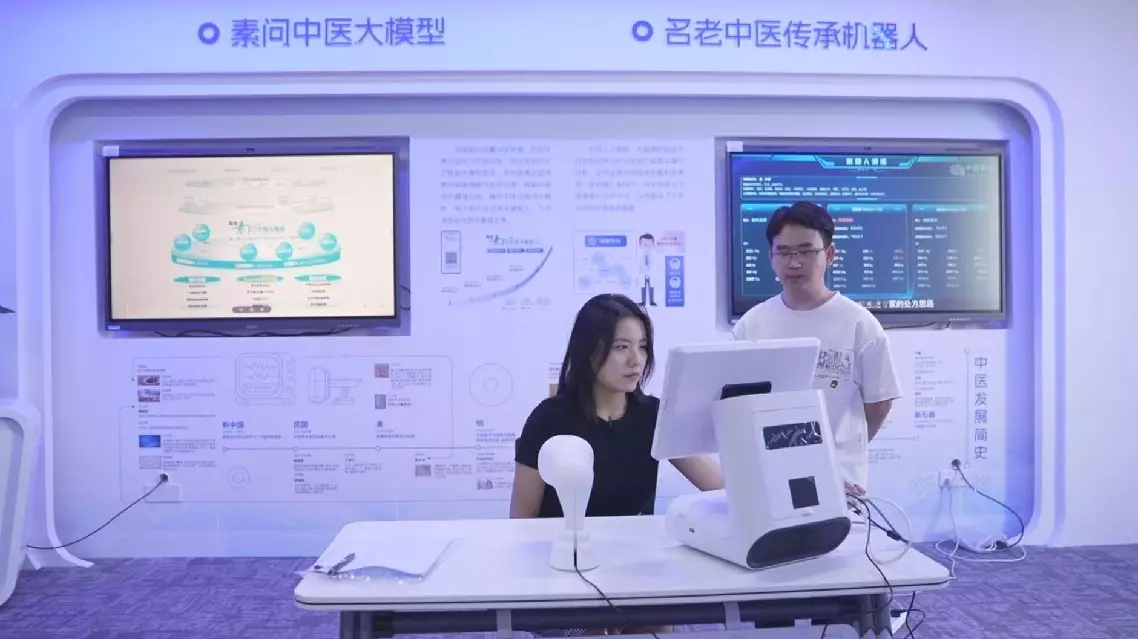In TCM, "to see, to hear, to ask, and to feel" are the four diagnostic methods carried out by doctors. But the AI-powered diagnostic equipment, jointly developed by Zhejiang Shuren University and the local AI company Congbao Technology, can perform these methods as well.