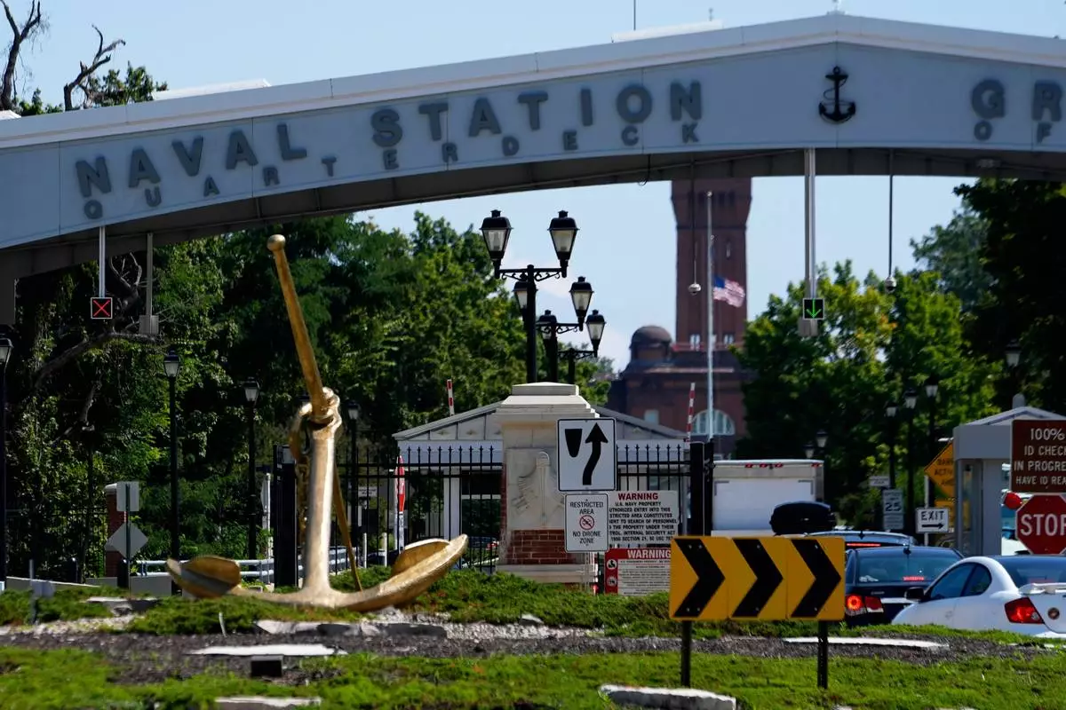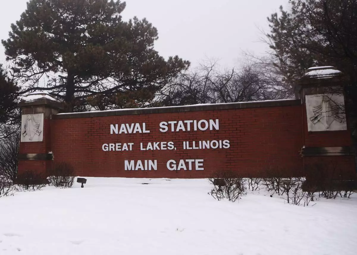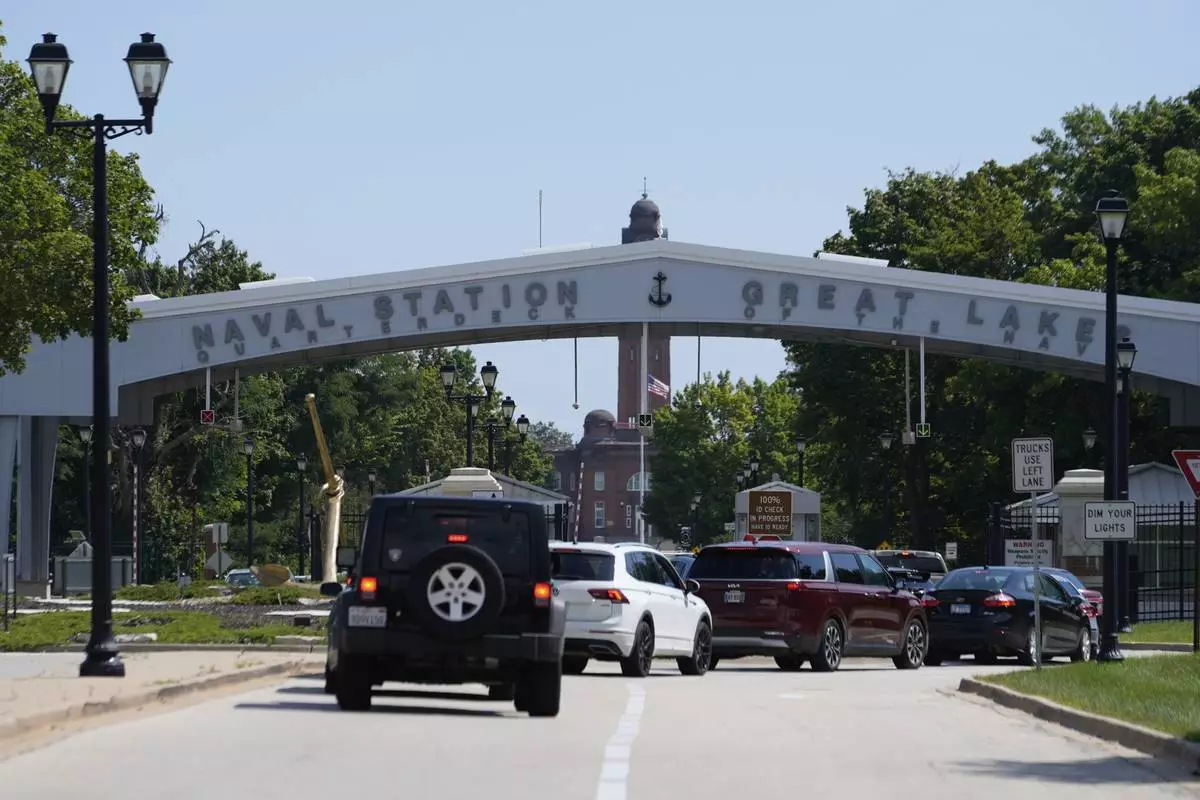 Main entrance for Naval Station Great Lakes, about 35 miles north of Chicago, is seen, Thursday, Aug. 28, 2025, in Great Lakes, Ill. (AP Photo/Kiichiro Sato)