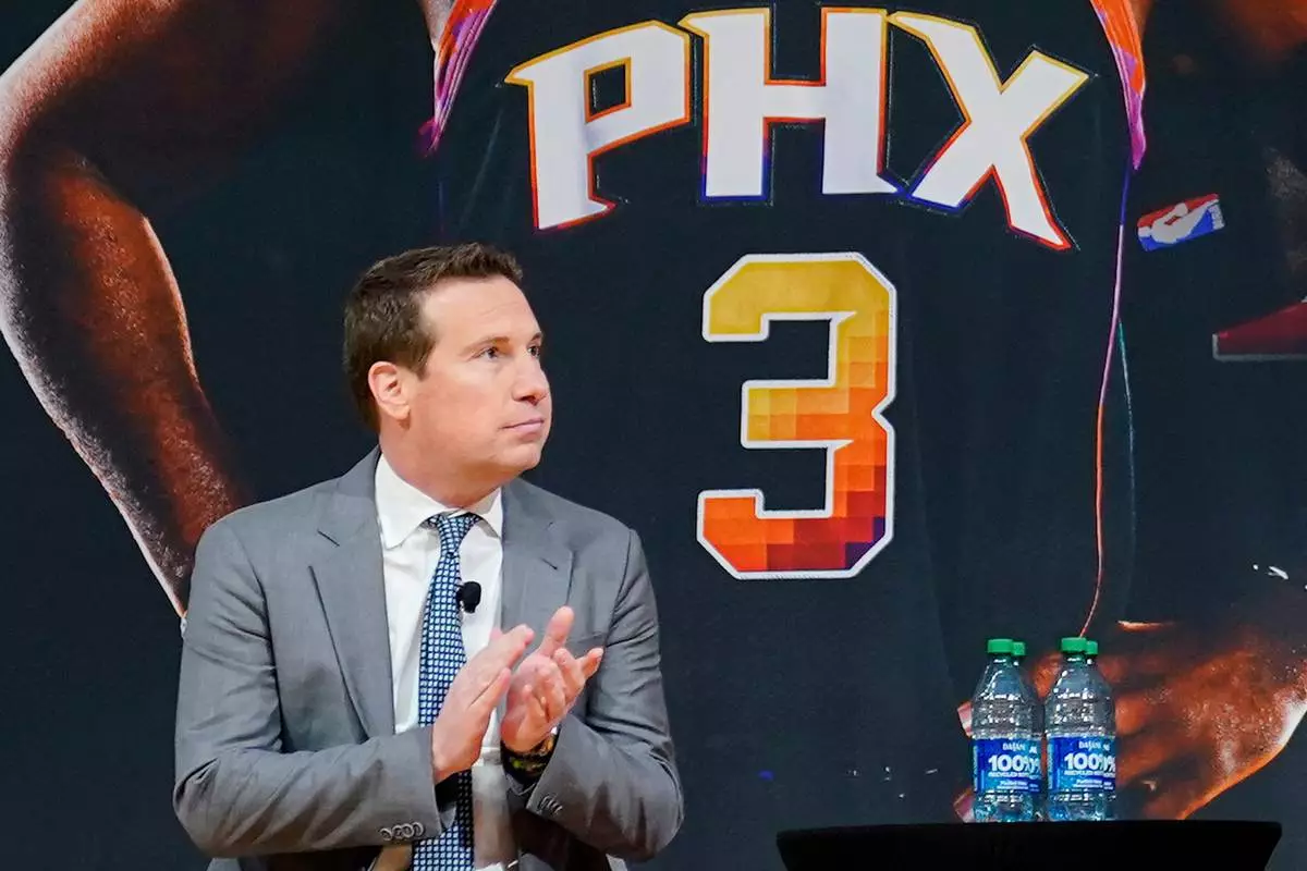 FILE - Phoenix Suns owner Mat Ishbia looks on during an NBA basketball news conference, Thursday, Feb. 16, 2023, in Phoenix. (AP Photo/Matt York, File)