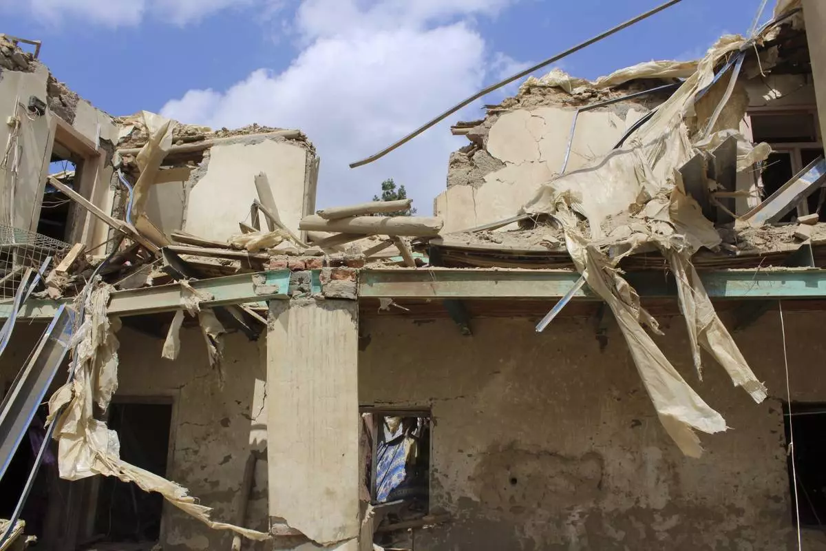 A building destroyed in what Taliban authorities said was a Pakistani drone attack that killed eight civilians, including three children, is seen in Spera district of Khost province, Afghanistan, Thursday, Aug. 28, 2025. (AP Photo/Saifullah Zahir)