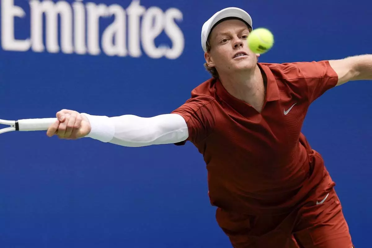 Jannik Sinner, of Italy, returns a shot to Alexei Popyrin, of Australia, during the second round of the U.S. Open tennis championships, Thursday, Aug. 28, 2025, in New York. (AP Photo/Seth Wenig)