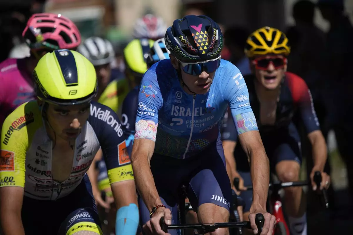 FILE - Belgium's Kobe Goossens, Britain's Chris Froome and Britain's Thomas Pidcock, from left to right, climb Col de la Croix de Fer pass during the twelfth stage of the Tour de France cycling race over 165.5 kilometers (102.8 miles) with start in Briancon and finish in Alpe d'Huez, France, Thursday, July 14, 2022. (AP Photo/Daniel Cole, File)