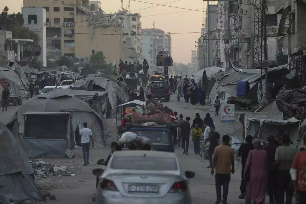 Hundred of people who fled Gaza City were putting together tents Friday in the central Gaza Strip, west of Nuseirat refugee camp.