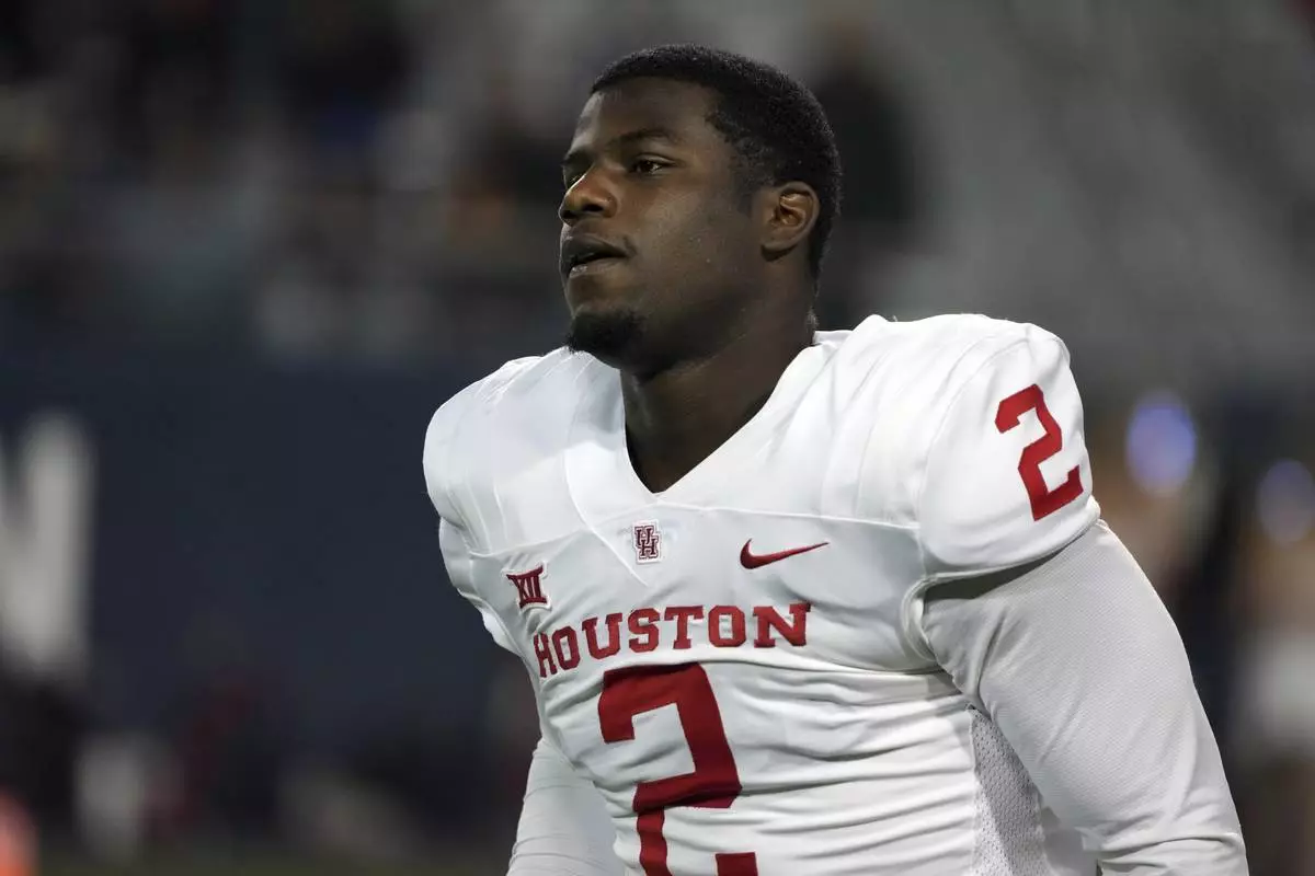 FILE - Houston defensive back A.J. Haulcy in the first half during an NCAA college football game against Arizona, on Nov. 15, 2024, in Tucson, Ariz. (AP Photo/Rick Scuteri, File)