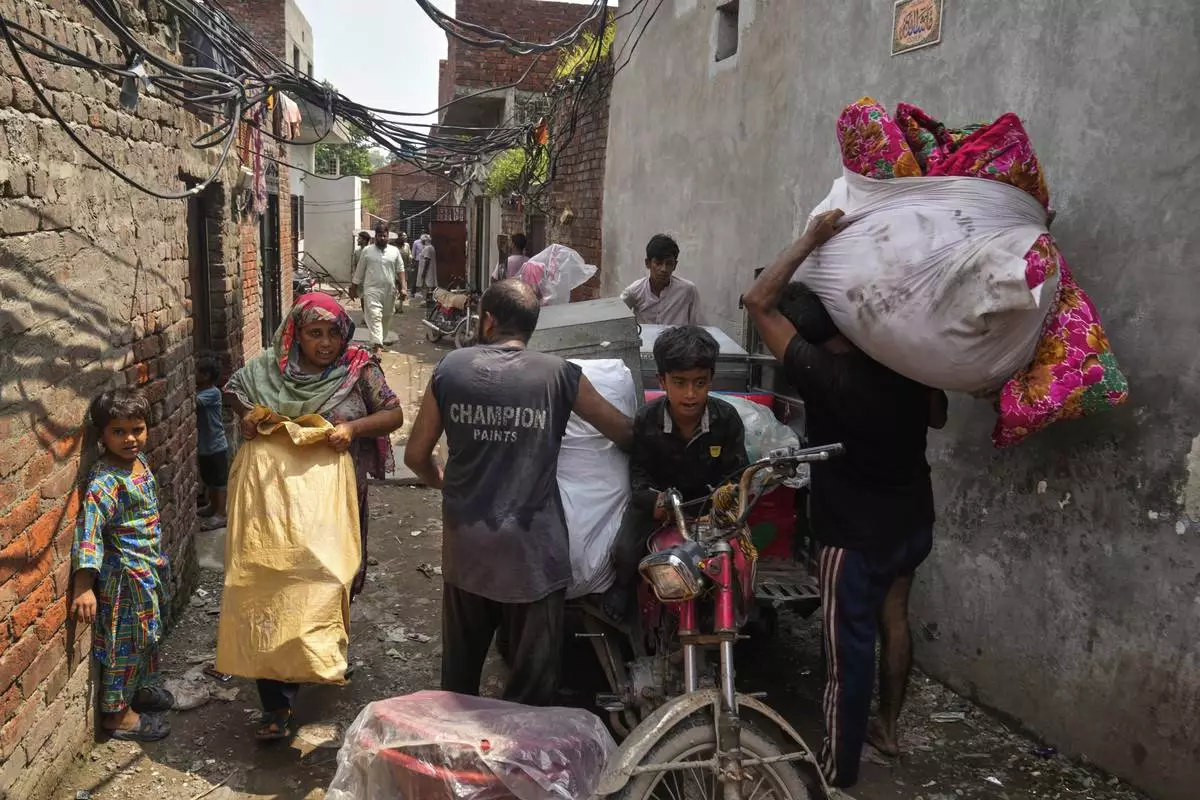 A resident loads his belongings into a donkey-cart after retrieving them from his flooded home due to rising water level in Ravi River after torrential rains at a low-lying area on the outskirts of Lahore, Pakistan, Aug. 28, 2025. (AP Photo/K.M. Chaudary)