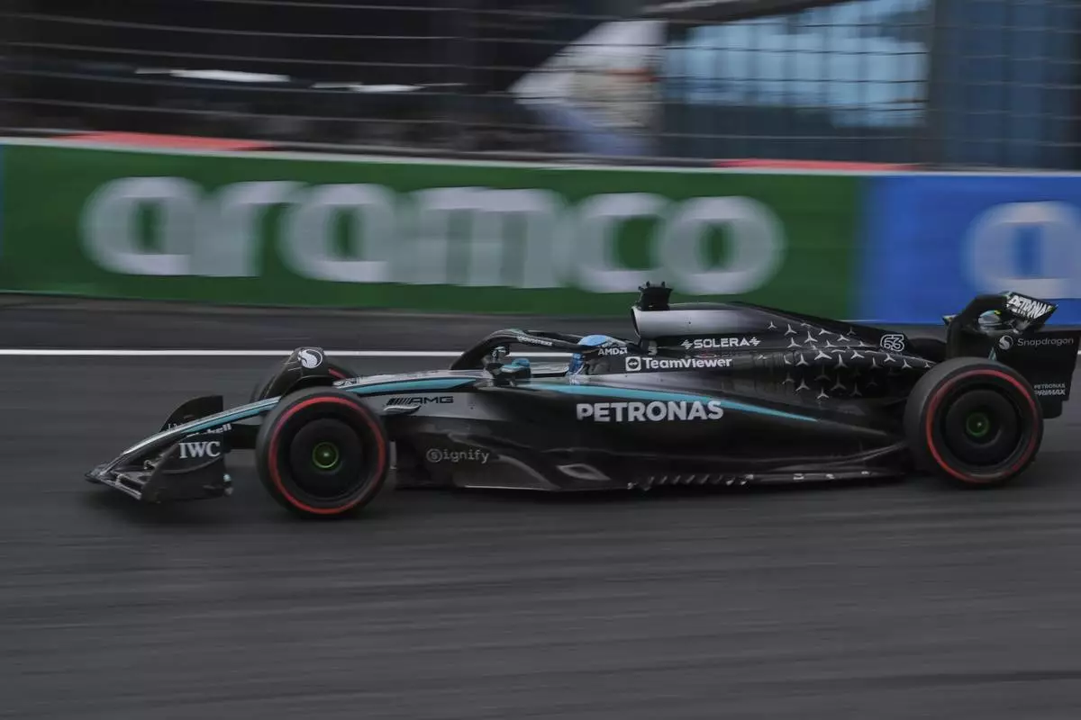 Mercedes driver George Russell of Britain in action during the first practice for the Formula One Dutch Grand Prix in Zandvoort, Netherlands, Friday, Aug. 29, 2025. (AP Photo/Peter Dejong)