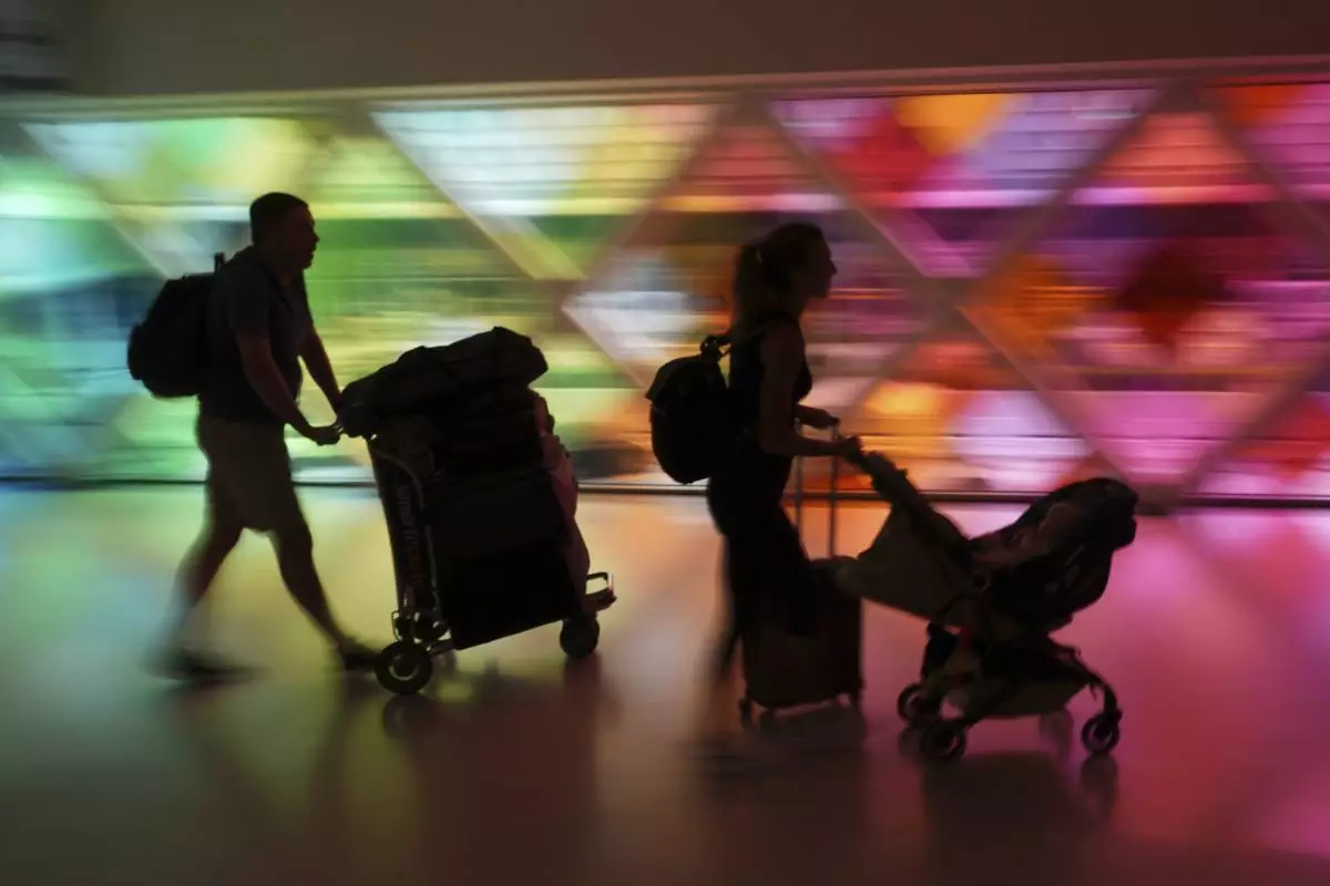 Travelers arrive at Miami International Airport at the start of the Labor Day weekend, Friday, Aug. 29, 2025, in Miami. (AP Photo/Rebecca Blackwell)