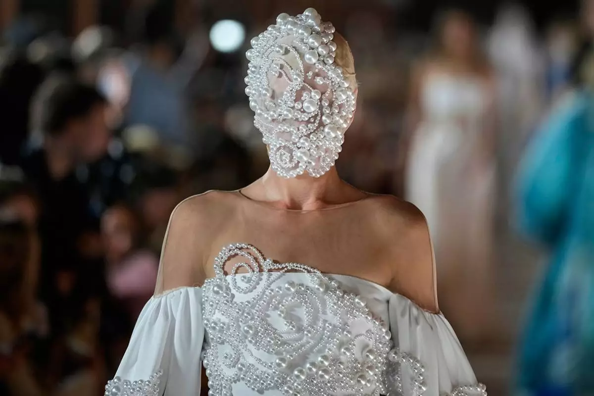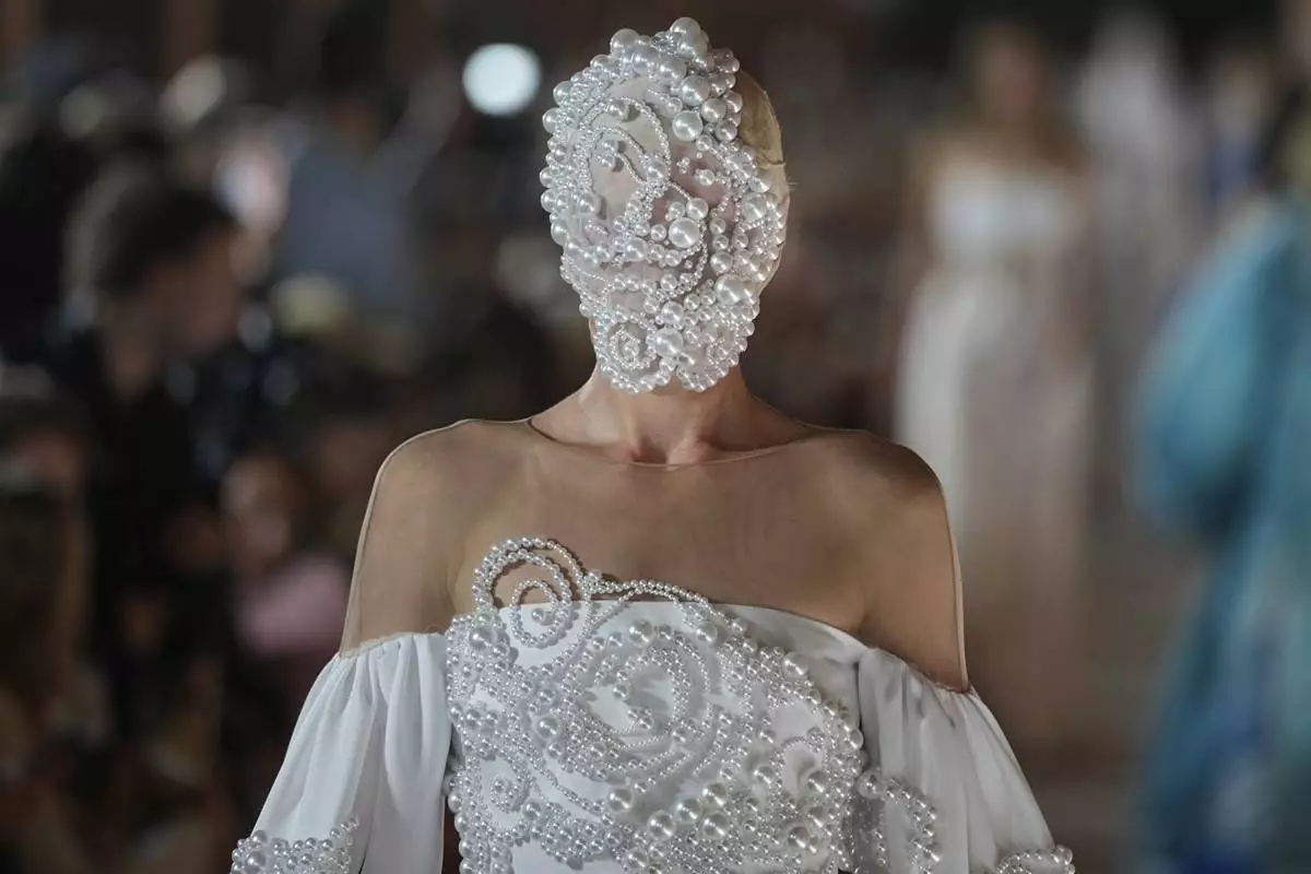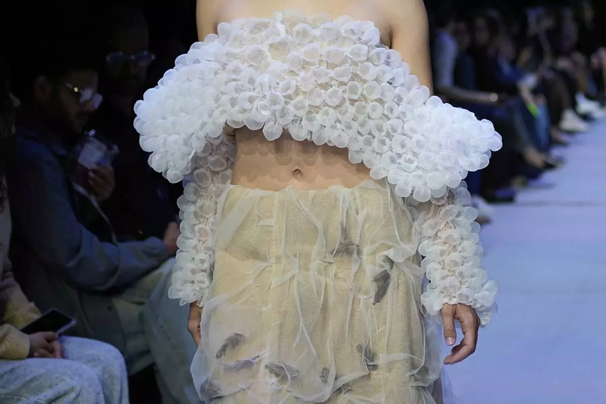 A model wears a creation by Brazilian brand Artemisi on a runway at the Moscow Fashion Week in Moscow, Russia, Friday, Aug. 29, 2025. (AP Photo/Pavel Bednyakov)