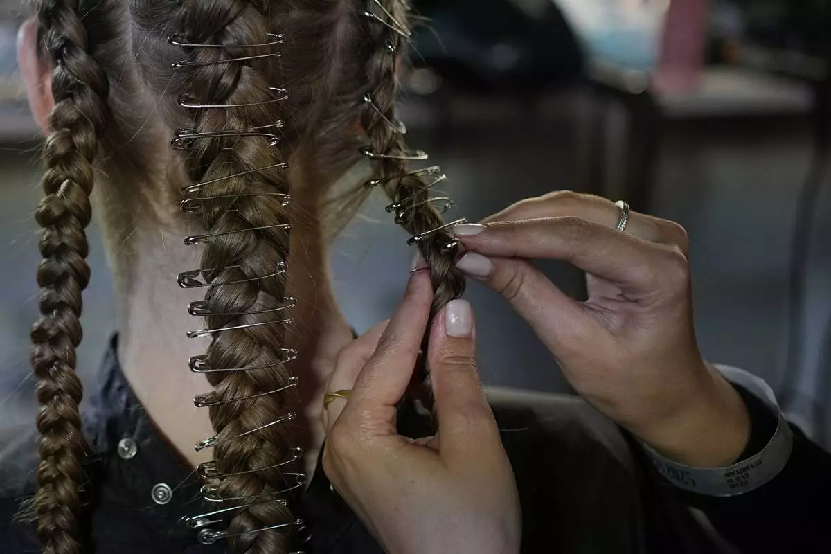 A model is prepared for a runway show at the backstage of the Moscow Fashion Week in Moscow, Russia, Friday, Aug. 29, 2025. (AP Photo/Pavel Bednyakov)