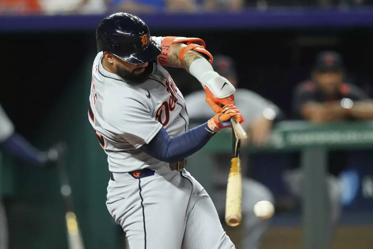 With runners at the corners, Carpenter leapt to snag Kyle Isbel’s drive at the top of the fence in right field, ending a scoreless sixth inning and maintaining Detroit’s 4-3 lead.