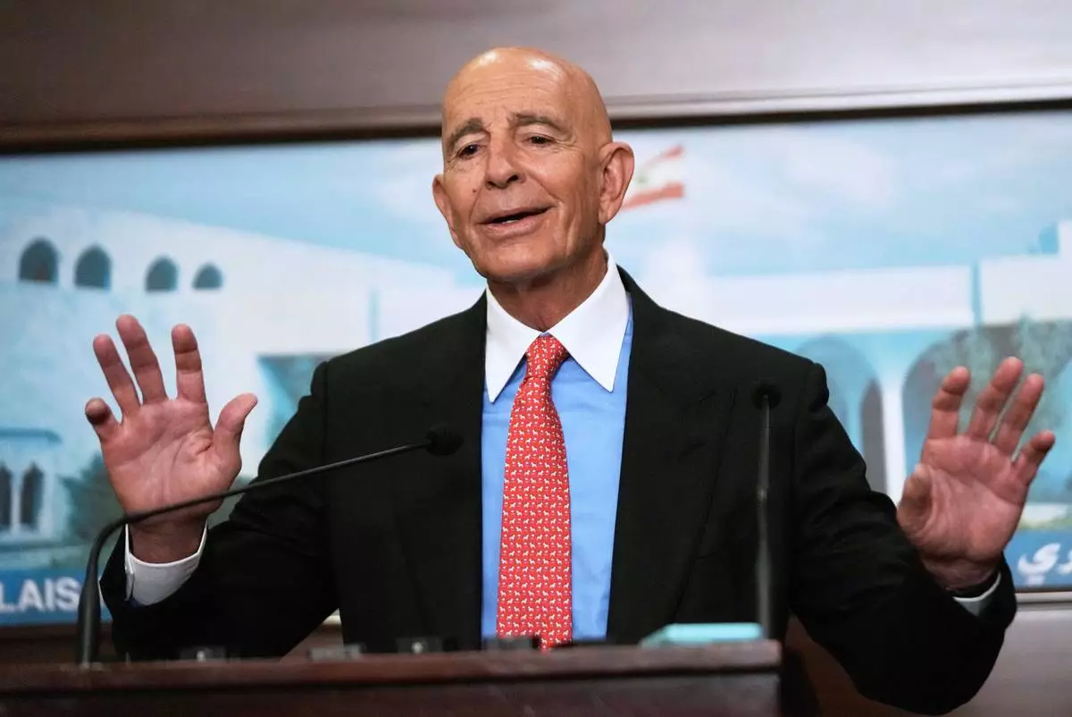FILE - U.S. Ambassador to Turkey and Special Envoy to Syria Tom Barrack speaks during a press conference after he and other U.S. senators met with the Lebanese President Joseph Aoun, at the presidential palace in Baabda, east of Beirut, Lebanon, Aug. 26, 2025. (AP Photo/Hussein Malla, File)