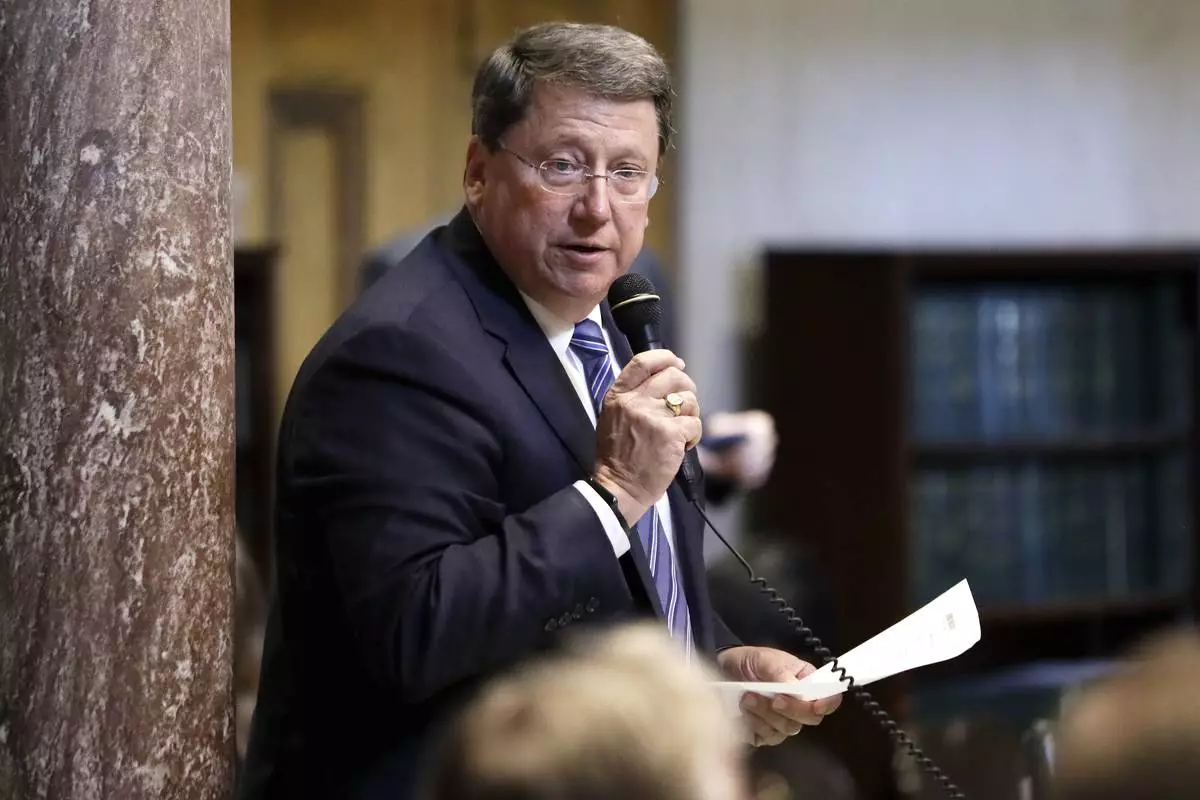 FILE - Sen. Mark Norris, R-Collierville, debates a bill on the Senate floor, May 10, 2017, in Nashville, Tenn. (AP Photo/Mark Humphrey, File)