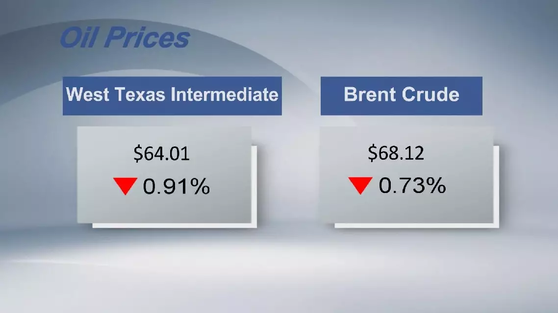 The West Texas Intermediate for October delivery slipped 59 cents, or 0.91 percent, to settle at 64.01 U.S. dollars a barrel on the New York Mercantile Exchange.
