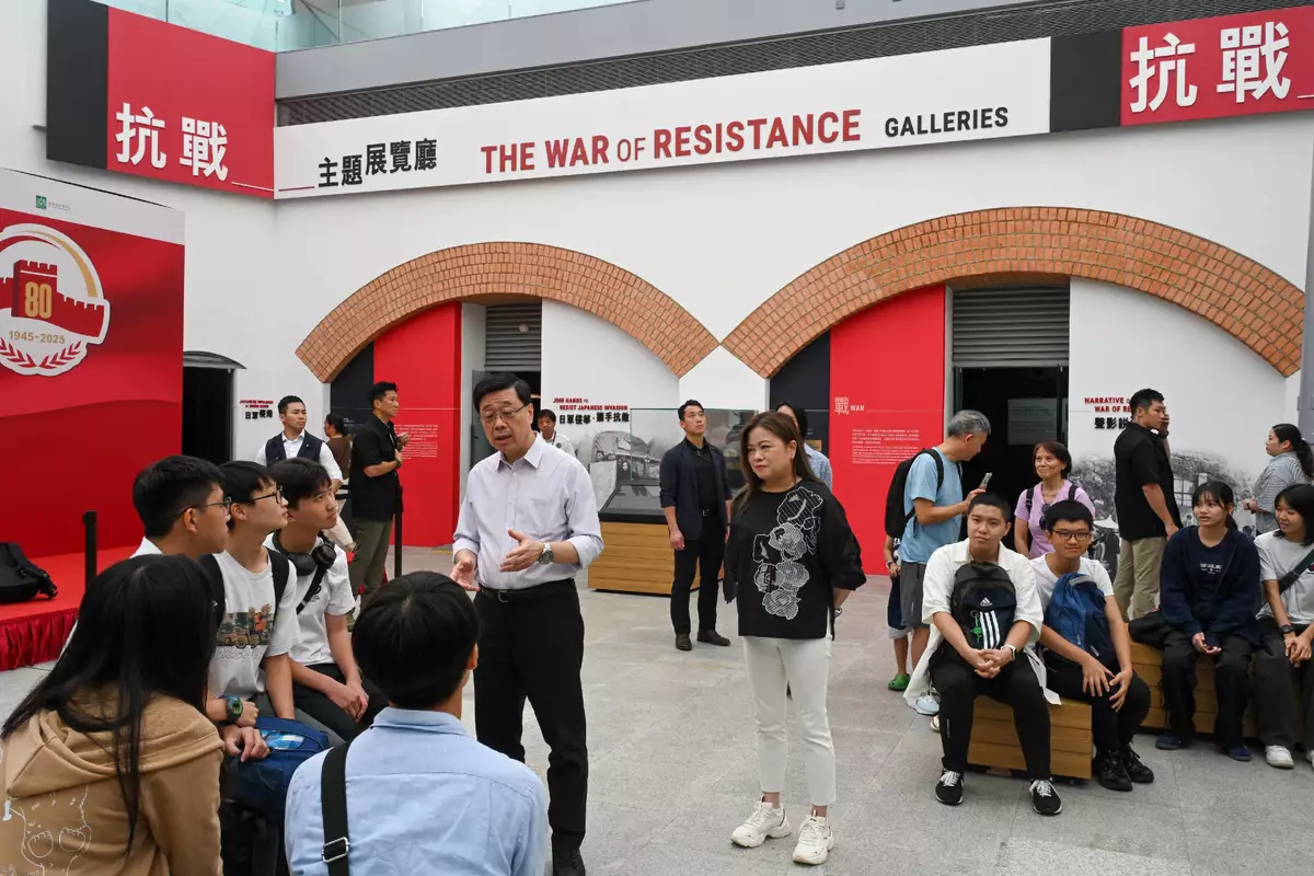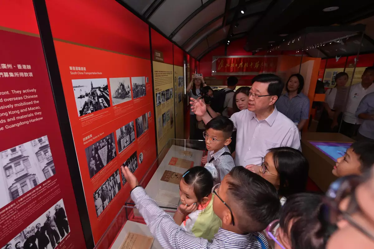 Mr Lee and the officials then visited the Hong Kong Museum of the War of Resistance and Coastal Defence. They toured the "Standing Together for Peacebuilding: Commemorating the 80th Anniversary of Victory in the War of Resistance in Guangdong and Hong Kong" exhibition jointly organised by the museum and Guangdong Museum of Revolutionary History, and interacted with young people there. Noting that this year marks the 80th Anniversary of Victory in the Chinese People's War of Resistance Against Japanese Aggression and the World Anti-Fascist War, Mr Lee said that the HKSAR Government's Working Group on Patriotic Education is co-ordinating the organisation of commemorative activities by various policy bureaux and departments at full steam, actively passing on the spirit of the War of Resistance, fostering a correct understanding of history among the younger generation, strengthening their patriotism, and nurturing them become pillars of society who can contribute to the development of Hong Kong and the country.