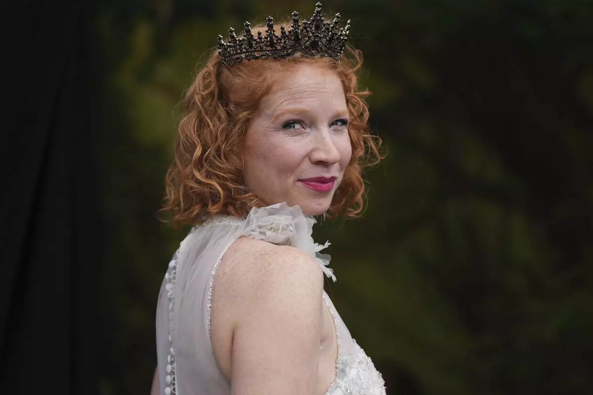 A participant poses with a crown during the Red Head Days festival in Tilburg, Netherlands, Saturday, Aug. 30, 2025. (AP Photo/Virginia Mayo)