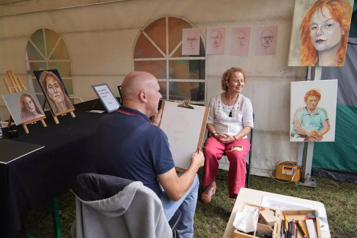 A participant has her portrait done during the Red Head Days festival in Tilburg, Netherlands, Saturday, Aug. 30, 2025. (AP Photo/Virginia Mayo)