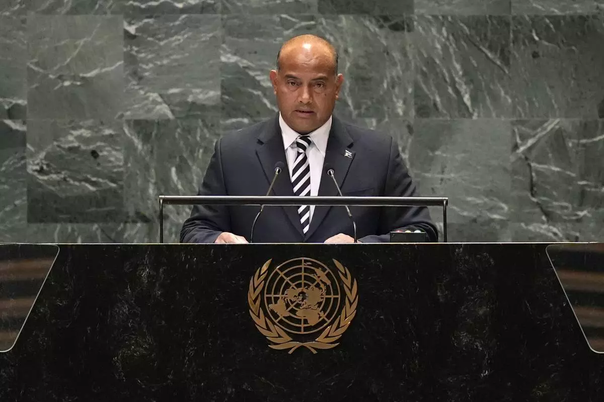 FILE - President of Nauru David Ranibok Adeang addresses the 79th session of the United Nations General Assembly, Sept. 24, 2024. (AP Photo/Pamela Smith, File)