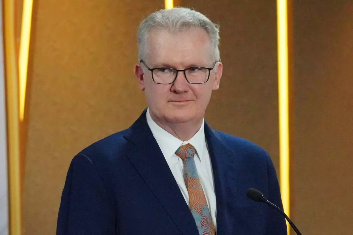 FILE - Australian Home Affairs Minister Tony Burke, right, listens to Indonesian Coordinating Minister for Legal, Human Rights, Immigration and Correctional Affairs, Yusril Ihza Mahendra, during a news conference after their meeting in Jakarta, Indonesia, Dec. 3, 2024. (AP Photo/Tatan Syuflana, File)