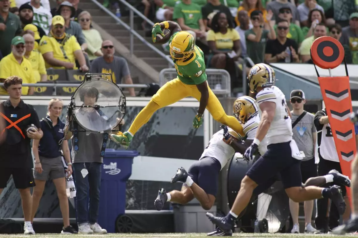 Ten receivers had a catch for the Ducks in the game, and all three of Moore's touchdowns were thrown to different receivers.