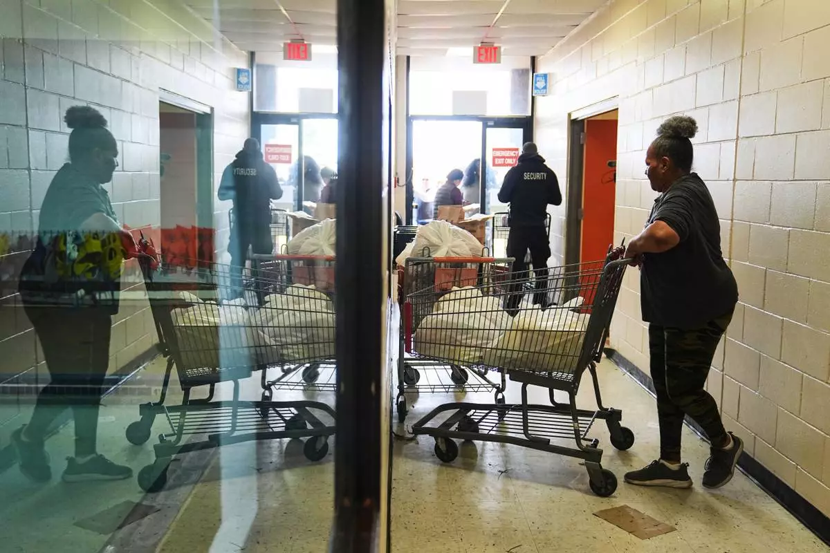 Volunteer Karen Robinson moves groceries durning an emergency food distribution at The Jewish Federation of Greater Philadelphia's Mitzvah Food Program in Philadelphia, Friday, Nov. 7, 2025. (AP Photo/Matt Rourke)