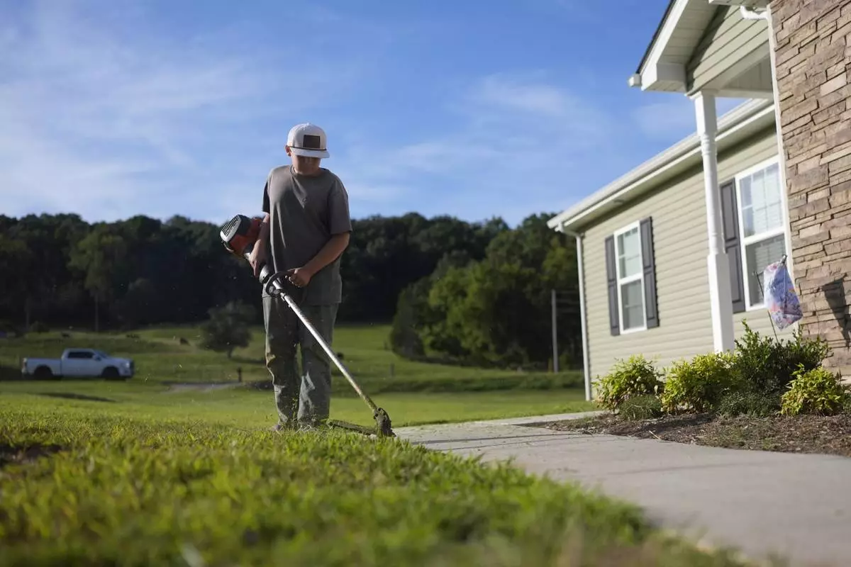 Michah Colley cuts the grass with a trimmer outside his home Wednesday, Aug. 27, 2025, in Talbott, Tenn. (AP Photo/George Walker IV)
