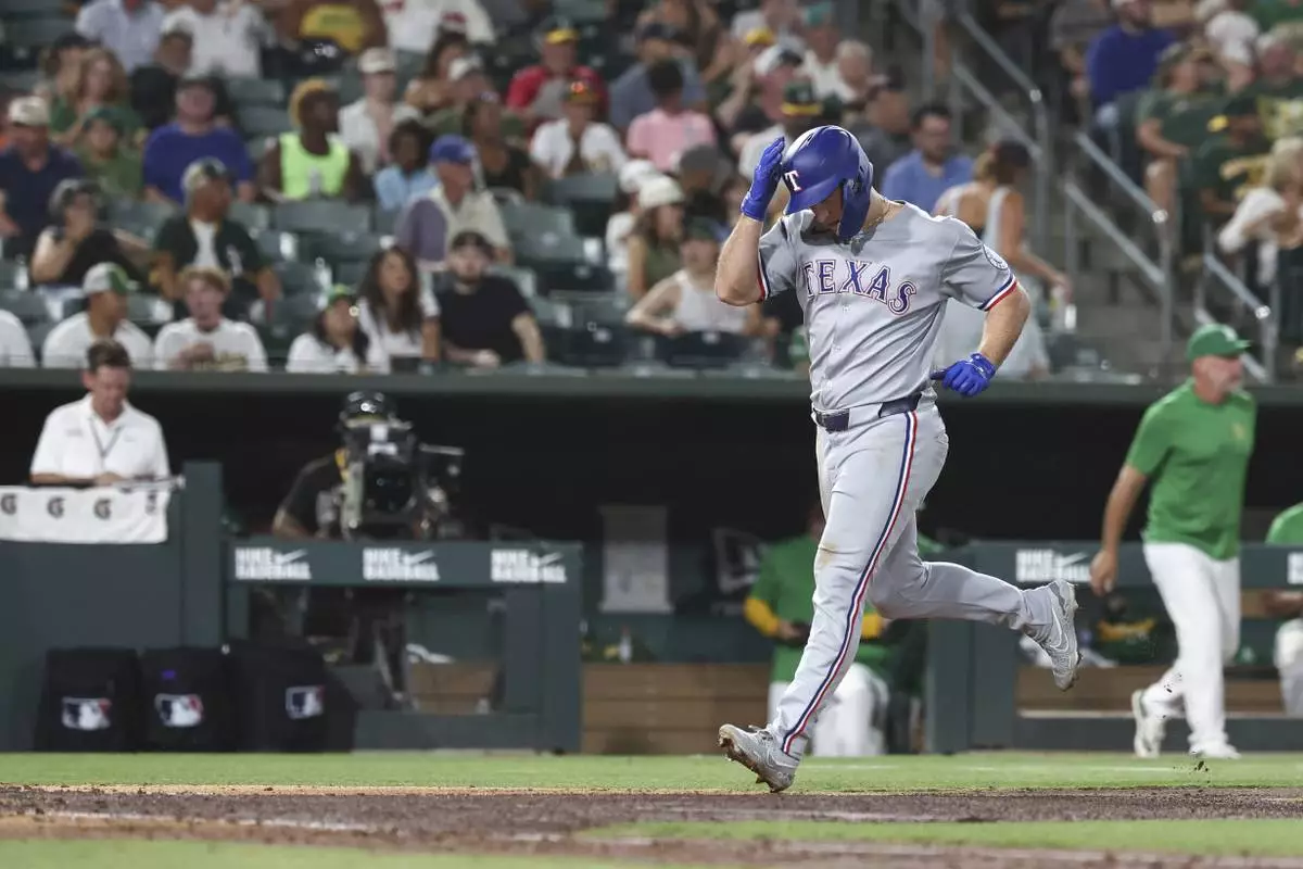 Rooker finished with three hits, but Texas won its fifth straight against the A’s and leads the season series 7-5.