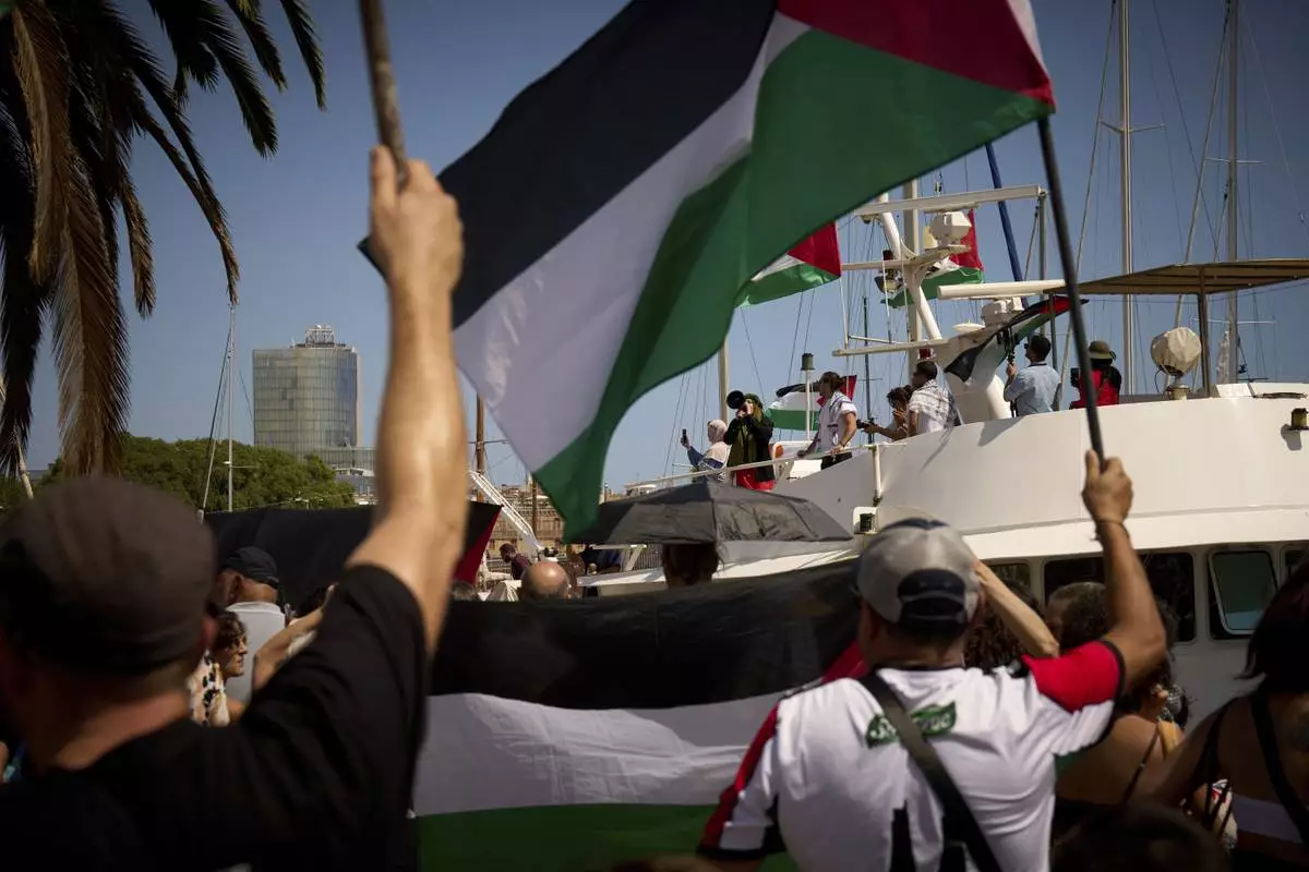 Thousands of supporters flocked to the Barcelona pier, some of them wearing kaffiyehs and chanting “Free Palestine!” and “Boycott Israel!” to send off a wide variety of boats, flying Palestinian flags, from rundown old luxury yachts to tiny wooden sailboats and industrial-looking vessels. One of them, the Sirus, is more than 100 years old.