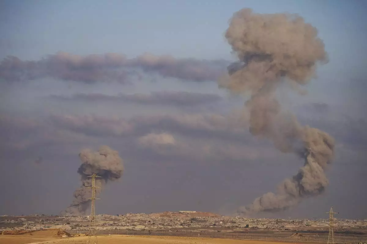 Smokes rise to the sky following Israeli military strikes in the northern Gaza Strip, as seen from southern Israel, Sunday, Aug. 31, 2025. (AP Photo/Maya Levin)