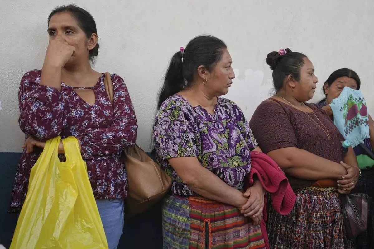 Relatives of unaccompanied minors deported from the United States await updates outside La Aurora International Airport, in Guatemala City, Sunday, Aug. 31, 2025. (AP Photo/Moises Castillo)
