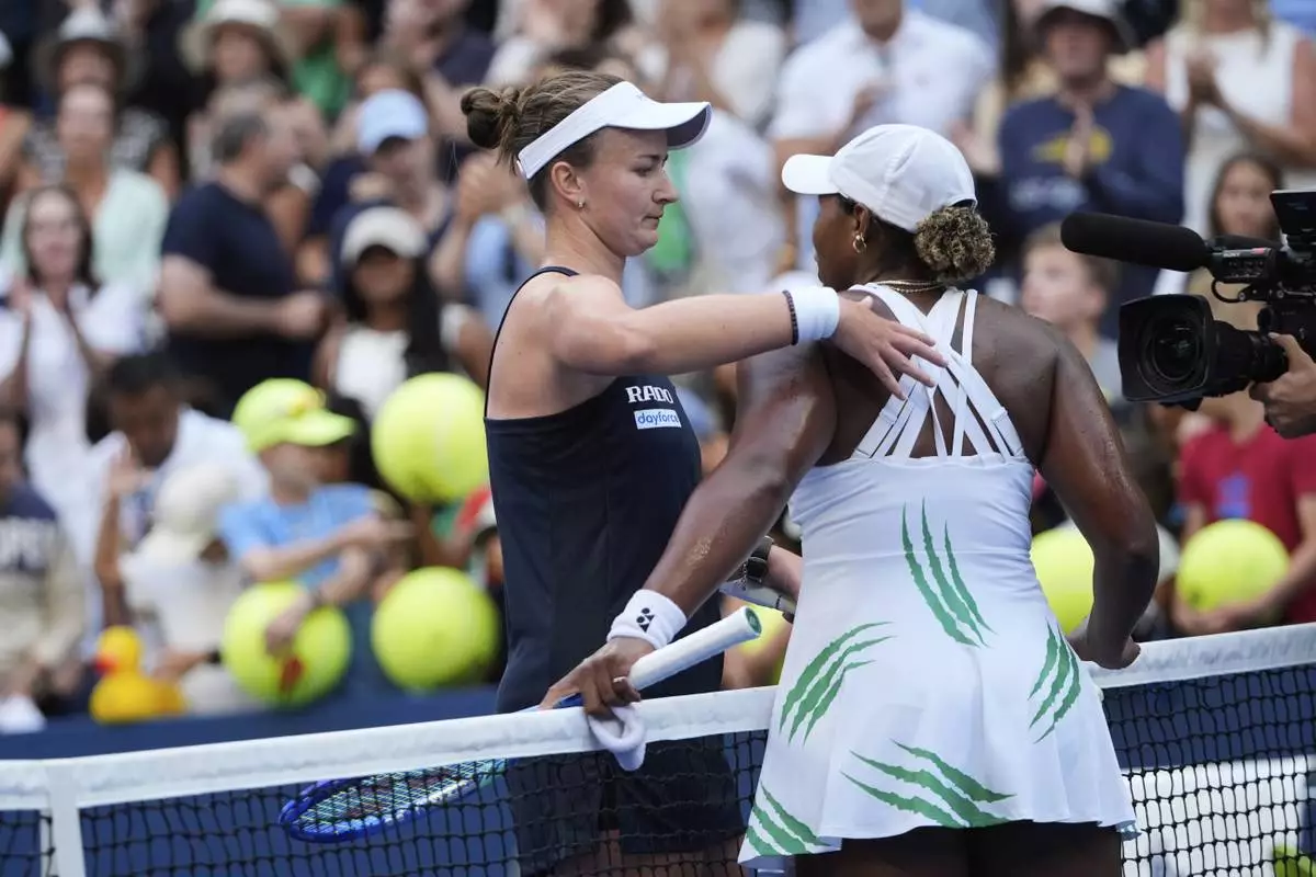 NEW YORK (AP) — Taylor Townsend couldn't convert eight match points in a second set that ended with a 25-minute tiebreaker and was eliminated from the U.S. Open on Sunday with a 1-6, 7-6 (13), 6-3 loss to Barbora Krejcikova.