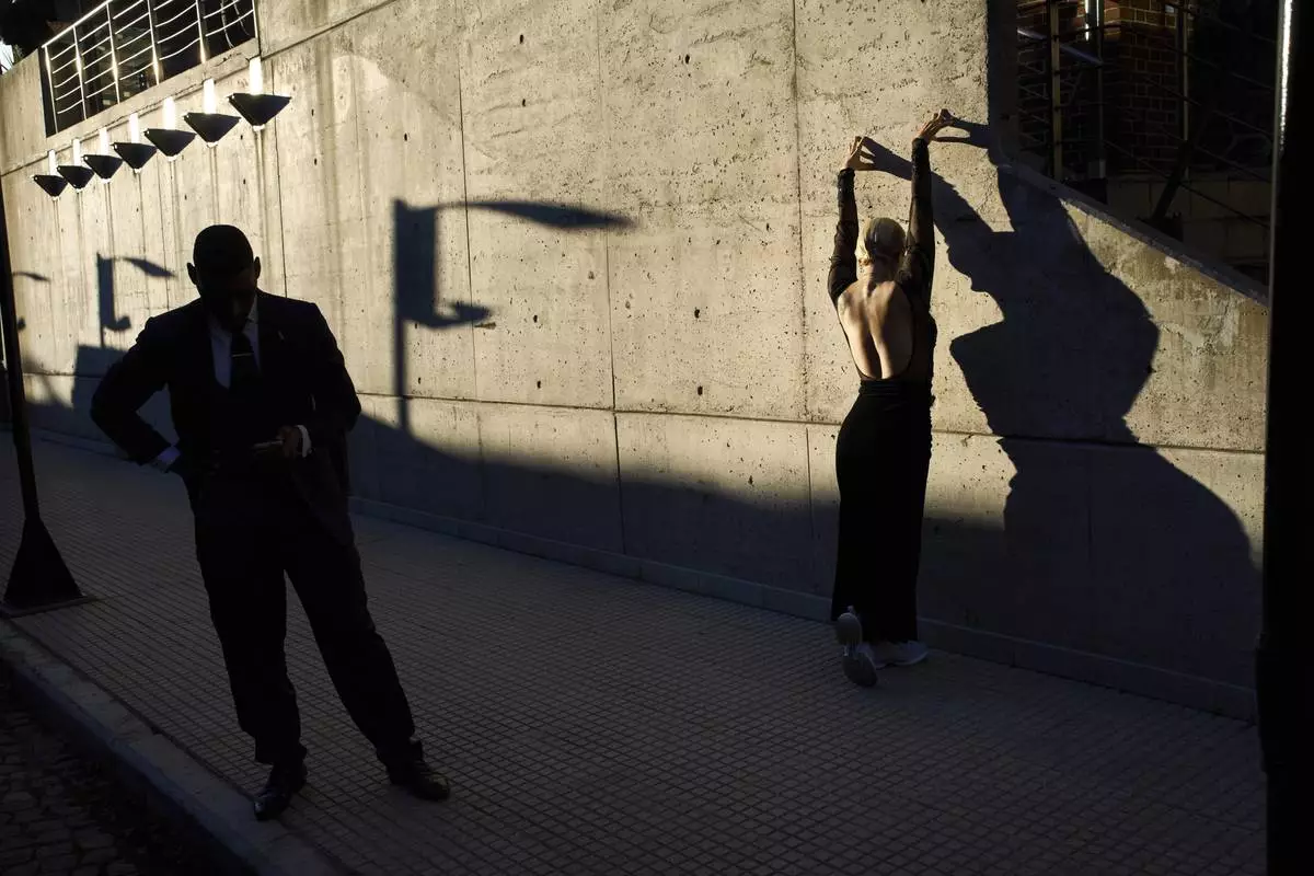 Ana Gomez, from Colombia, stretches as she prepares to compete in the World Tango Championship semifinals in Buenos Aires, Argentina, Friday, July 29, 2025. (AP Photo/Rodrigo Abd)