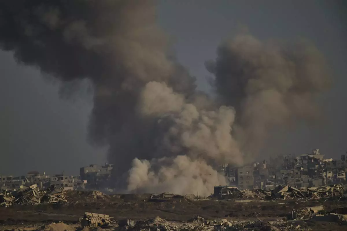 Smoke rises to the sky following an Israeli military strike in the northern Gaza Strip, as seen from southern Israel, Saturday, Aug. 30, 2025. (AP Photo/Leo Correa)