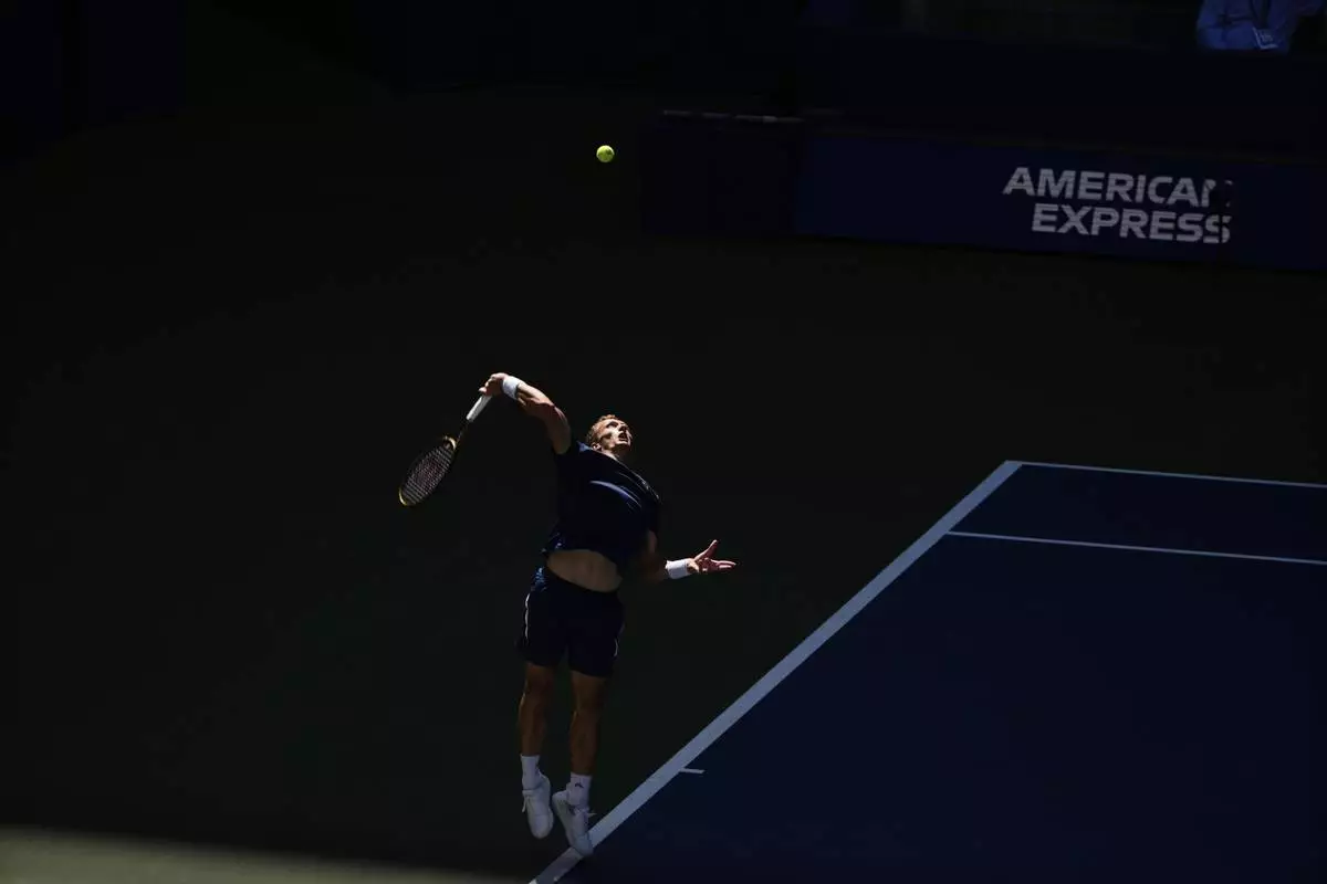 Jiri Lehecka, of the Czech Republic, serves against Adrian Mannarino, of France, during the fourth round of the U.S. Open tennis championships, Sunday, Aug. 31, 2025, in New York. (AP Photo/Pamela Smith)
