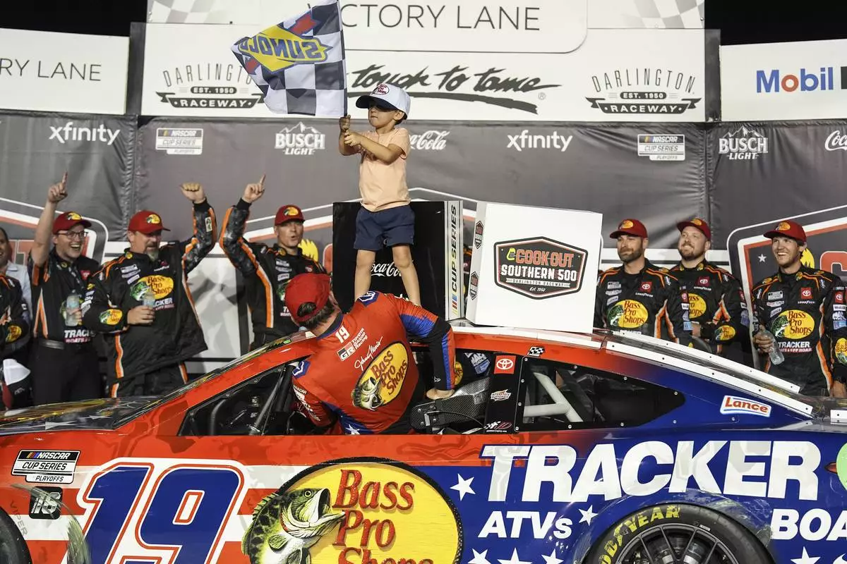 Two-time Southern 500 winner Erik Jones was third, followed by John Hunter Nemechek and AJ Allmendinger. Playoff racers Bubba Wallace and Denny Hamlin, Briscoe's JGR teammate, were next.