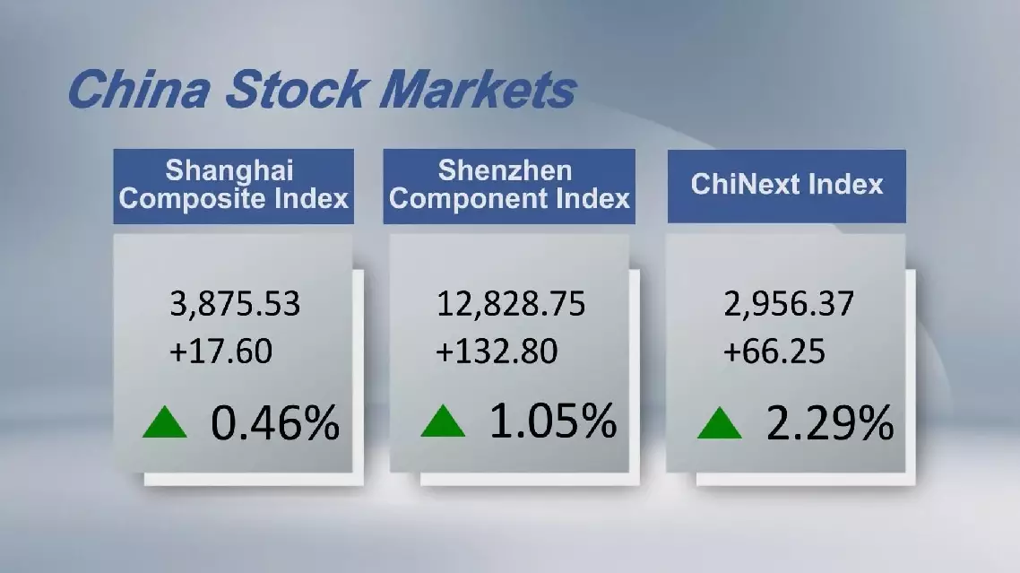 Chinese stocks closed higher on Monday, with the benchmark Shanghai Composite Index up 0.46 percent to 3,875.53 points.