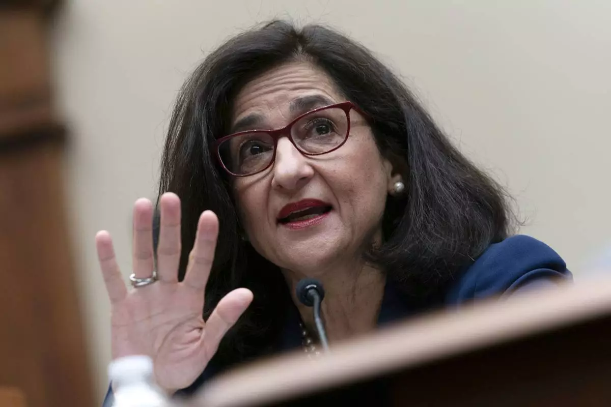 FILE - Columbia University President Minouche Shafik testifies before the House Committee on Education and the Workforce hearing on "Columbia in Crisis: Columbia University's Response to Antisemitism" on Capitol Hill in Washington, April 17, 2024. (AP Photo/Jose Luis Magana, File)