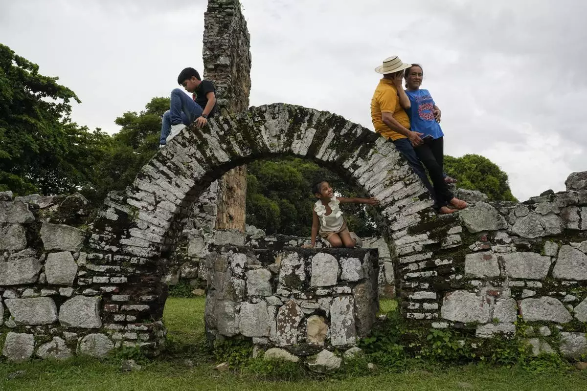 Visitors tour the ruins of Old Panama, the city's first colonial settlement founded in 1519 by Spanish conqueror Pedro Arias de Avila, in Panama City, Friday, Aug. 15, 2025.(AP Photo/Matias Delacroix)