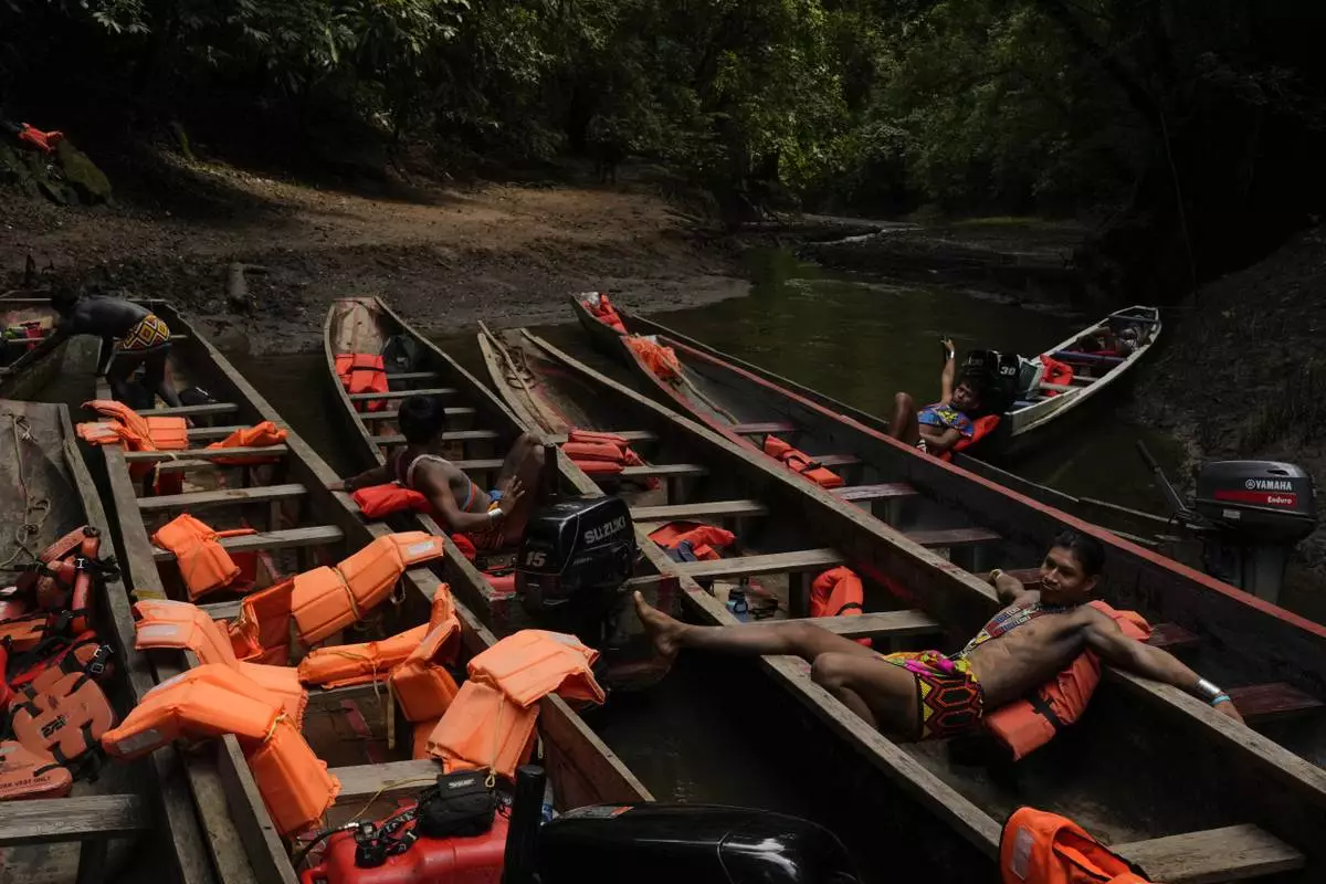 Embera Indigenous guides wait for the return of visitors touring the Chagres River, once the main colonial waterway carrying goods across Panama, between the Pacific Ocean and Caribbean, Saturday, Aug. 16, 2025. (AP Photo/Matias Delacroix)