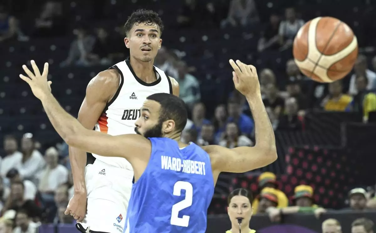 Germany stayed unbeaten in Group B with a 120-57 victory over Britain, which resisted in the early stages before collapsing. Franz Wagner had a double-double of 18 points and 10 assists in just 18 minutes of play and Tristan Da Silva scored 25 points for the Germans.