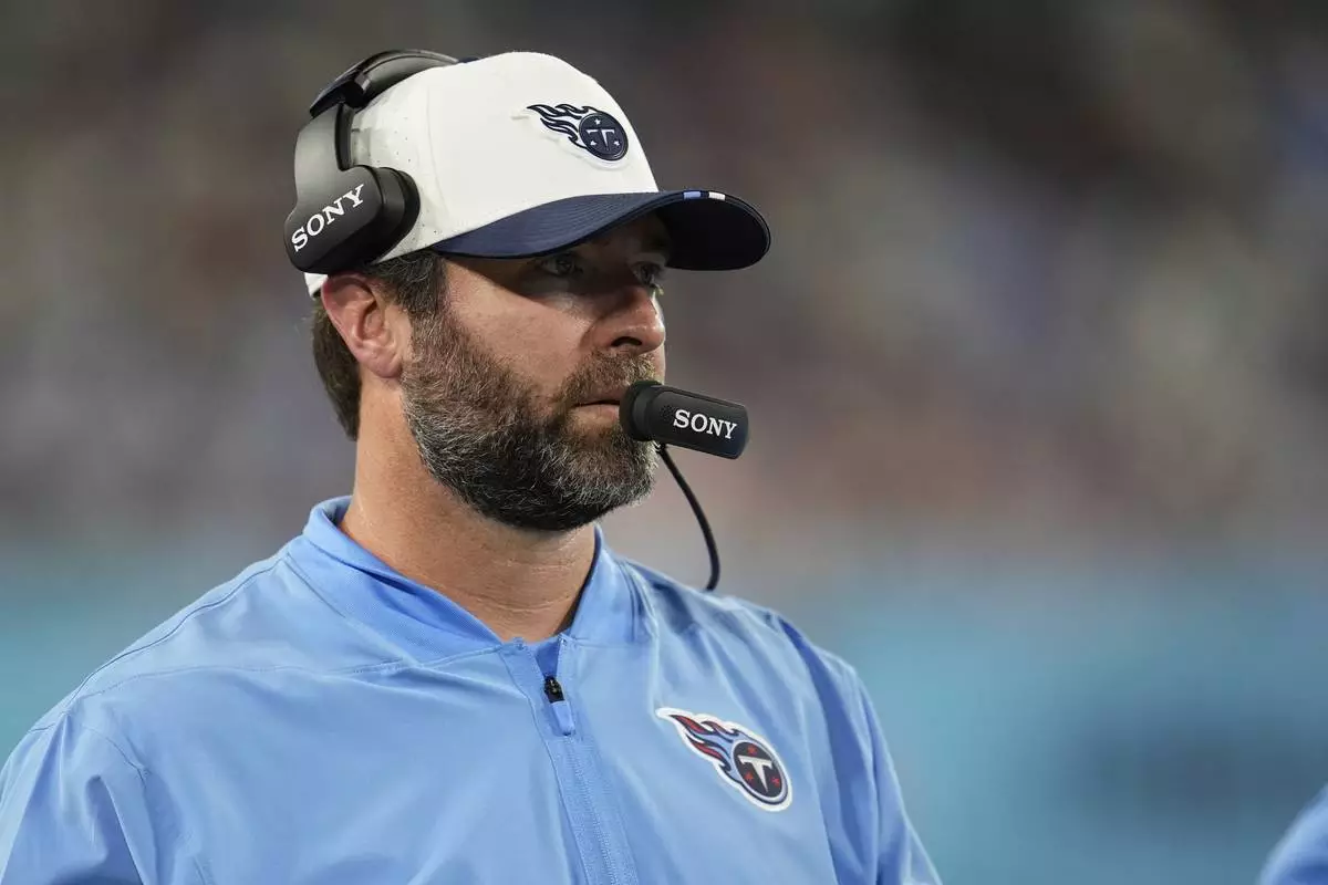 Tennessee Titans head coach Brian Callahan watches from the sidelines during the first half of a preseason NFL football game, against the Minnesota Vikings Friday, Aug. 22, 2025, in Nashville, Tenn. (AP Photo/George Walker IV)